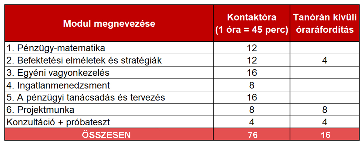 | Tanfolyam hossza | 92 óra |